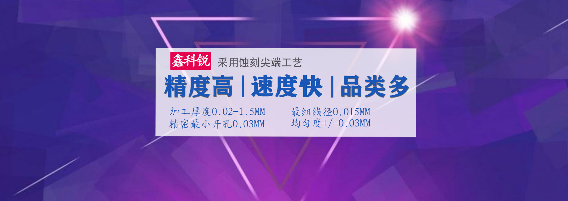 深圳市鑫科銳金屬制品有限公司是從事化學蝕刻,電蝕加工(EDM)的龍頭企業(yè),蝕刻產(chǎn)品廣泛應用于:電子、精密五金、通訊、汽車工程、醫(yī)療、航空航天、石油化工、軍事、科研、精密工程應用元件等行業(yè)。